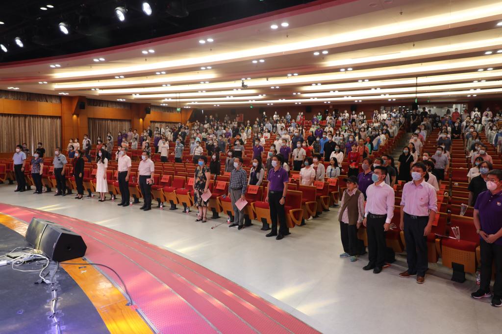 最后,全体教职工演唱《追寻》,在歌声中2022年教师节庆祝大会进入尾声。