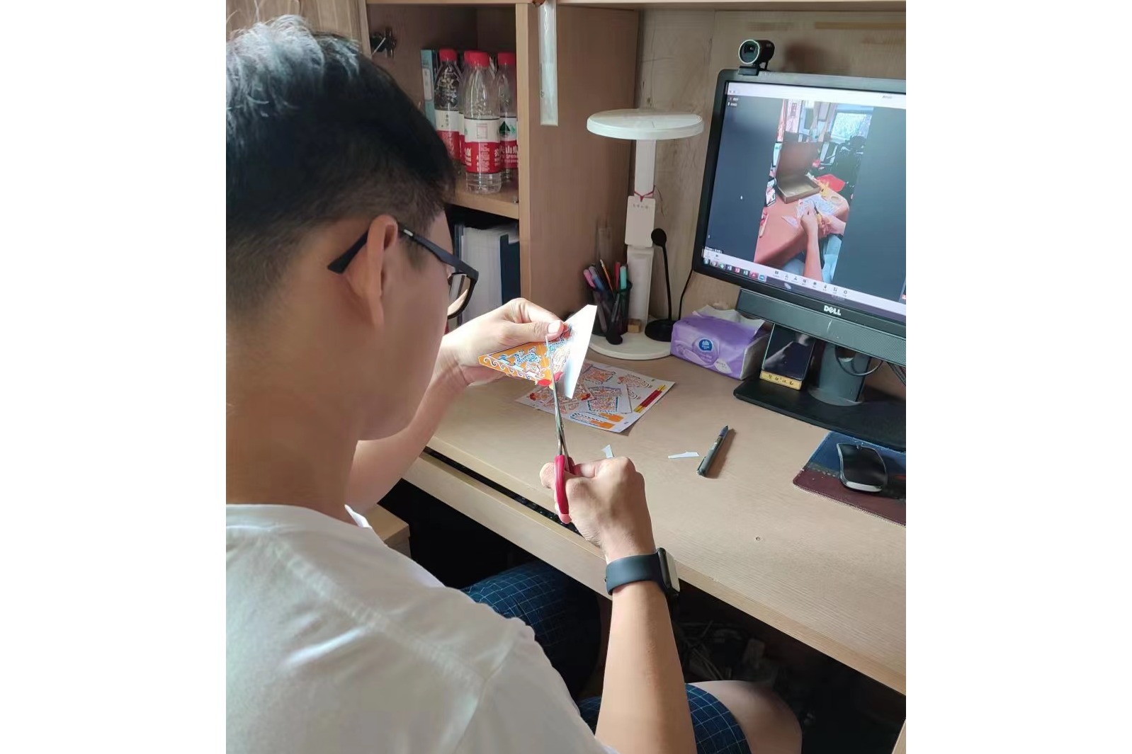 北京和香港的小伙伴们相约在线上“云游览”香港故宫文化博物馆。在香港师生的精心安排下,一场“接力”讲解在云端开启。从户外广场到内设展馆,从建筑特色到展览文物,香港的张元喆等6名同学通过手机镜头,将香港故宫文化博物馆展现给线上观看的北京小伙伴。共同的文化记忆打破了空间的阻隔,文化的脉搏在京港两地共同跳动。在体验活动中,大家共同学习“北京鬃人”的制作,学习体验古代建筑的榫卯结构和古代服饰的扎染工艺。