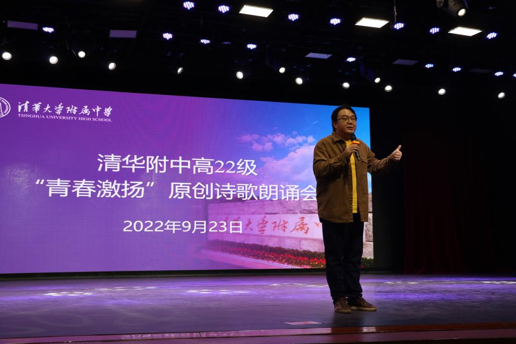 朗诵会的第三个环节,海淀区教师进修学校田圆老师为诗歌朗诵会作出了点评。田圆老师高度评价了附中学子们原创诗歌的奕奕文采和舞台上昂扬奋发的精神气度,指出了这次活动对于同学们学习生活、人际交往的重要意义。青春的诗篇,不仅是当下同学们最真挚的心声,更是未来三年最坚定的誓言。