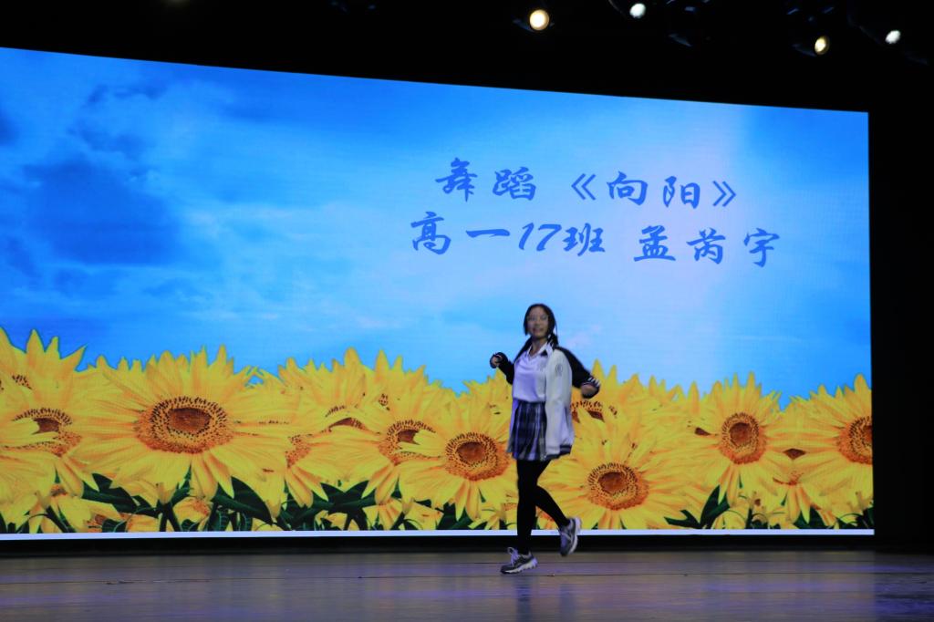 在朗诵会的第二个环节,高一17班孟芮宇、高一8班崔语涵分别为大家带来舞蹈《向阳》、《再次重逢的世界》,活泼的舞姿用另一种方式展现了青春的活力与美好。