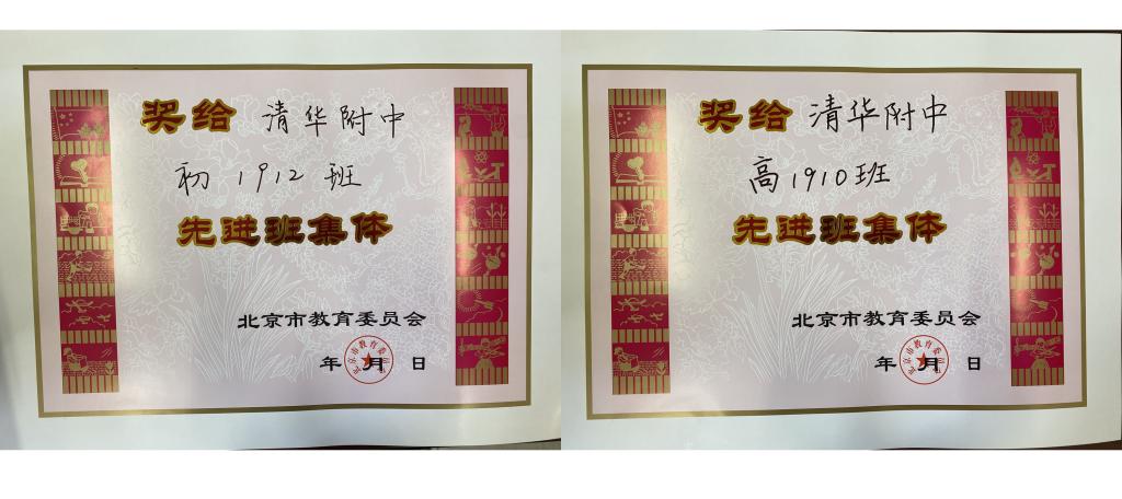 2022年9月,北京市及海淀区优秀班集体评选结果公布,澳门网上博彩初1912班、高1910班获得“北京市先进班集体”荣誉称号;初1911班、高1916班获得“海淀区先进班集体”荣誉称号。