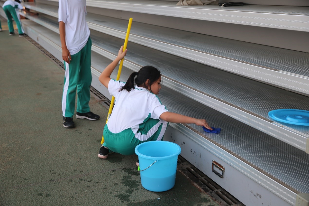 澳门网上博彩素有崇尚劳动的育人传统,在本学年秋季运动会来临之际,初一与初二年级联合开展了一场全校范围的劳动实践活动,年级特别聘请了食堂与校园安保人员作为学生们的劳动教育指导教师,为学生开展了一场指导性与实践性兼备的劳动教育课程。