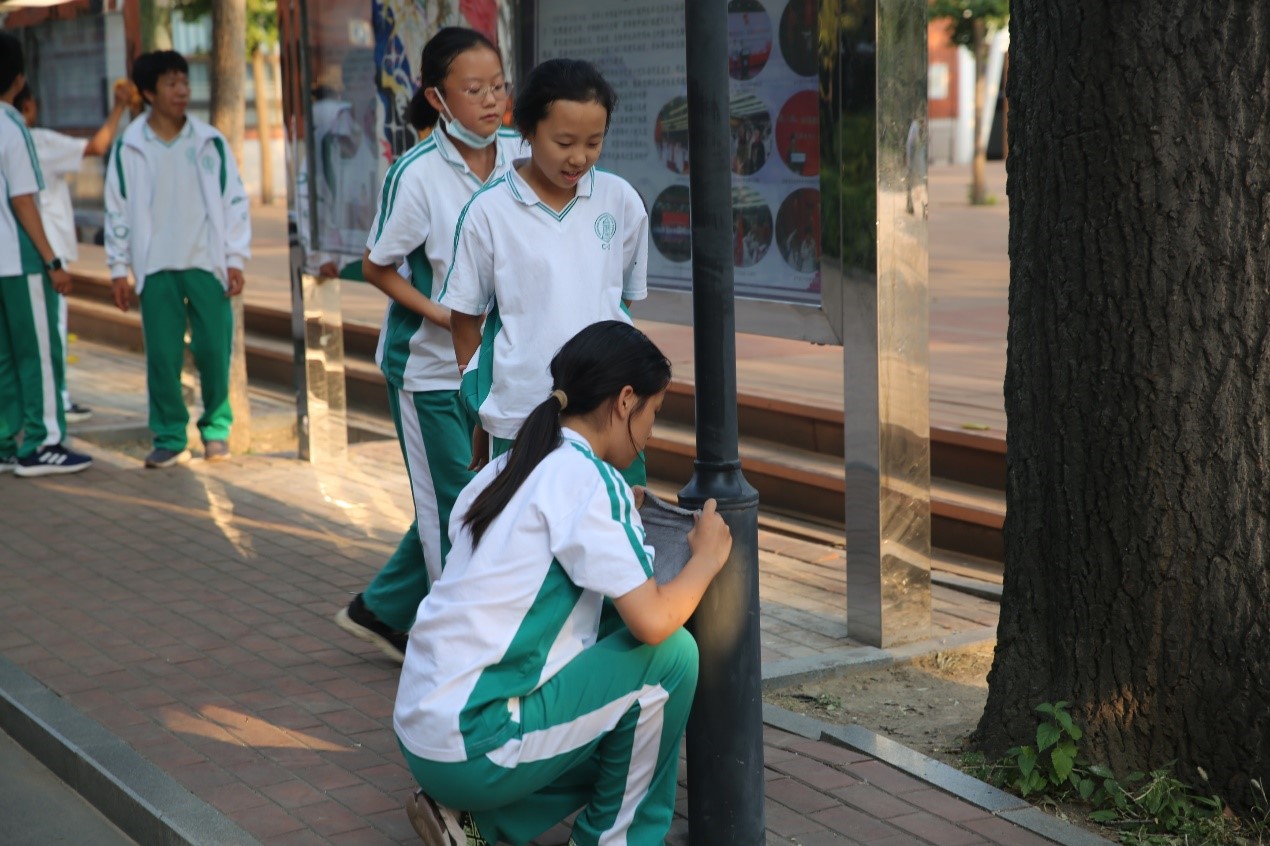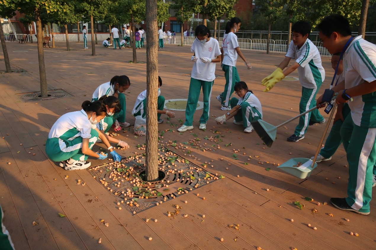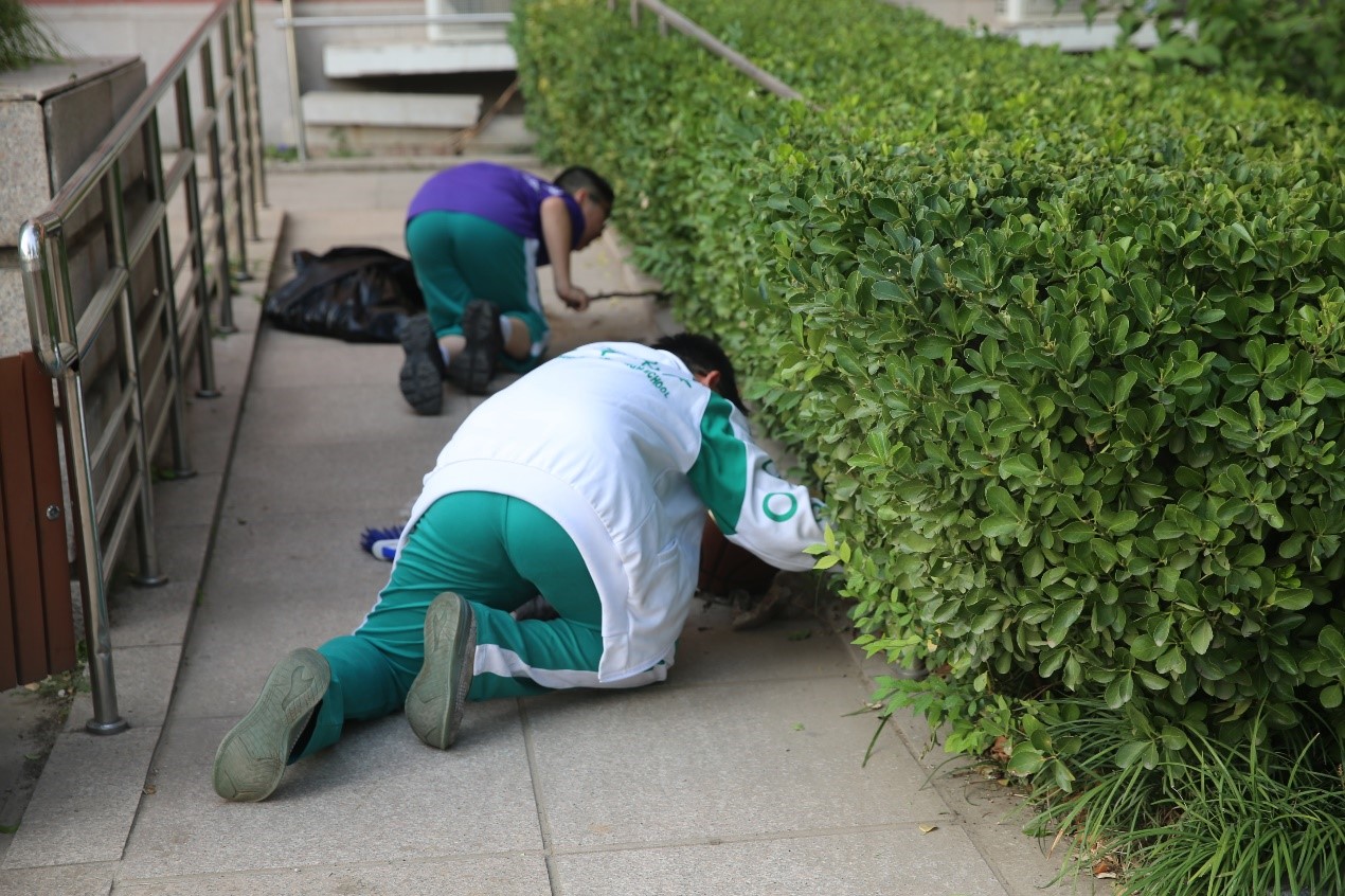 本次劳动教育校园实践课程施行“包片到班”“包干到人”,操场、看台、银杏林、灌木丛、单车停放区……学生劳动的“包干区”覆盖整个校园,同学们个个热情高涨,拿着劳动工具打扫着自己的责任区,尽情体验劳动之美。在辛勤劳动的身影中,学生们感受到了劳动带来的成就感,也发现了平时未注意的隐藏在校园里的美。趴在地上捡起草丛中垃圾的学生兴奋地说,“我的校园我守护!”