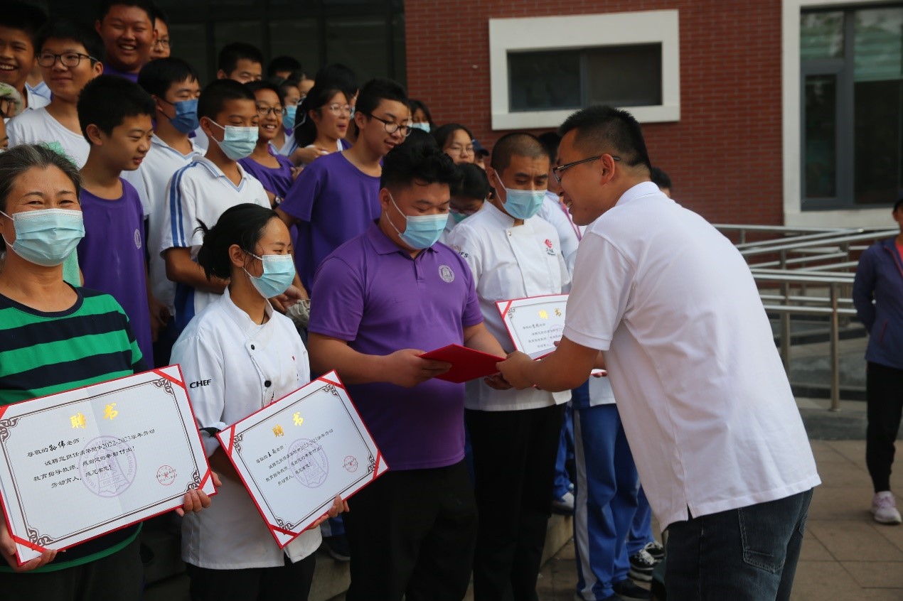 班主任代表为食堂工作人员颁发“劳动教育指导教师”聘书