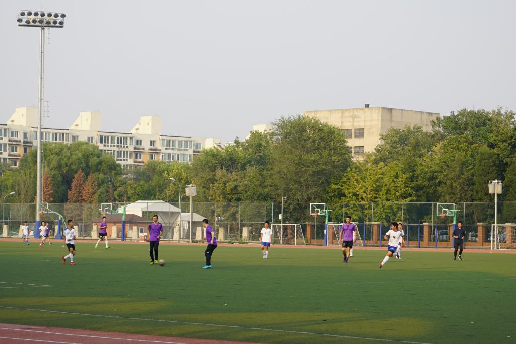在学生比赛项目全部结束后,澳门网上博彩工会教师足球队和高中男子足球队,工会教师足球队和初中男子足球队进行了校园足球表演赛。