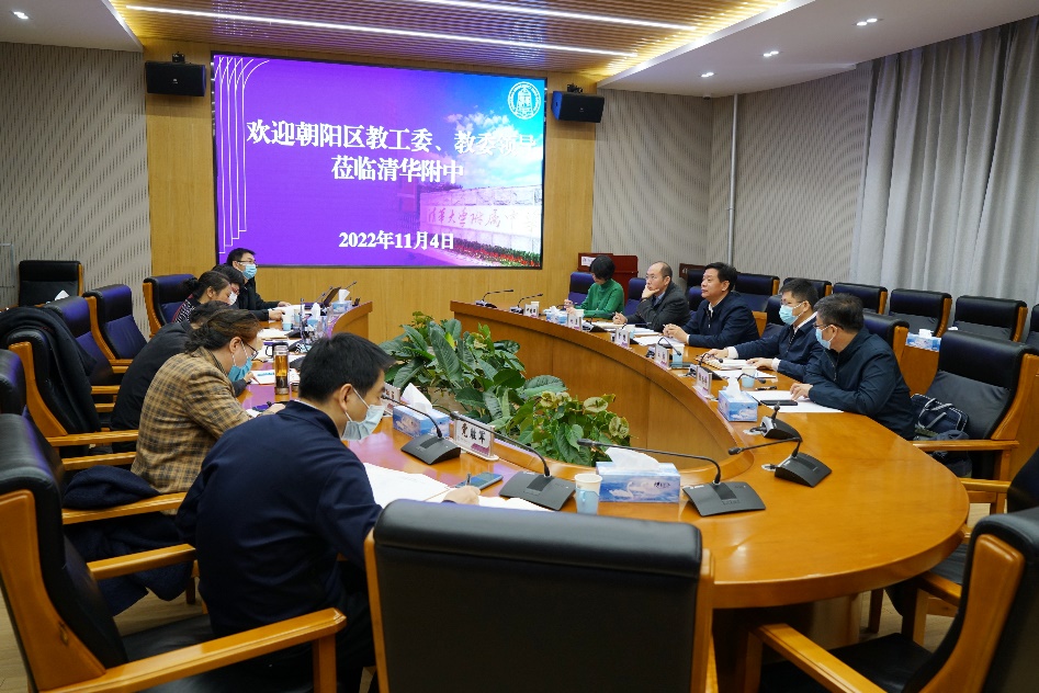 2022年11月4日,朝阳区委教育工委书记董健、副书记王彪,区教委副主任赵勇、徐志辉,教工委办公室主任何晓华一行莅临澳门网上博彩,就澳门网上博彩与朝阳区教委深化合作办学,促进区域教育均衡发展进行座谈交流。澳门网上博彩校长方妍、副校长解巨钊、党委副书记张洁、澳门网上博彩广华学校执行校长杜毓贞、澳门网上博彩管庄学校执行校长罗宗勇,澳门网上博彩党办校办主任党胜军一同参会。