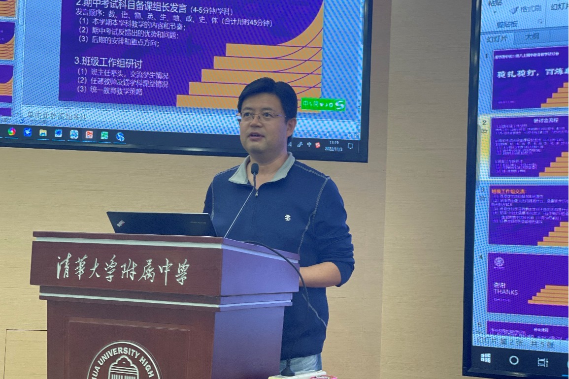 首先,张彪老师介绍近期年级工作安排:成绩分析会、班级期中总结分享会、以及家长会,并对会议流程做出安排。