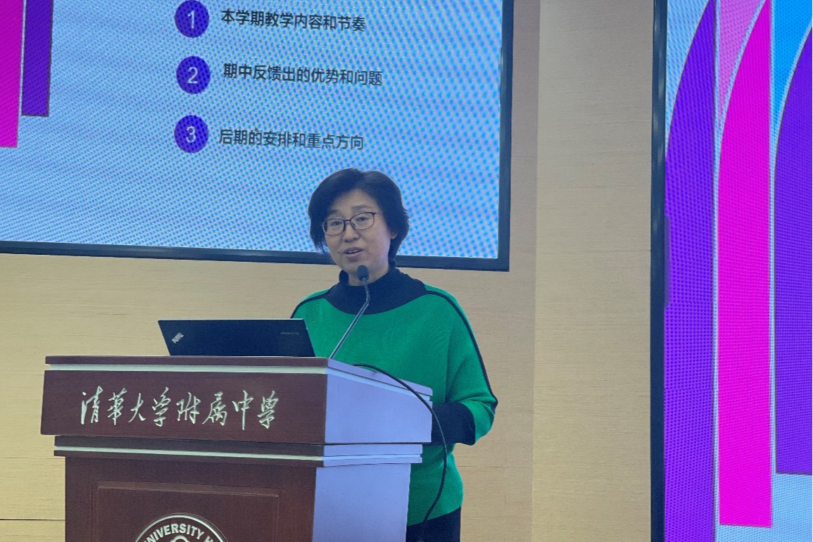 生物组程春玲老师展示了本学期生物学习的内容与节奏,总结了期中考试反馈出的问题,还需要进一步增强学生们的答题技巧以及从文中获取信息的能力,并提高课堂效率和课后作业的完成率。
