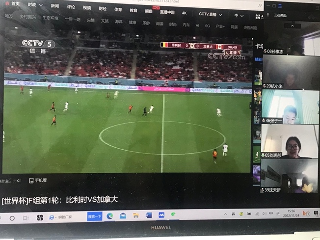 初2110班组织同学观看世界杯足球赛、讨论足球规则