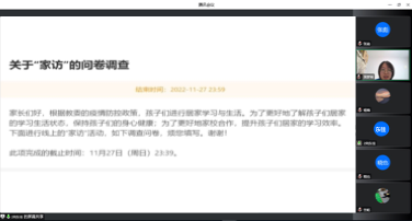 接着,初2102班班主任向东佳老师分享了本班线上家访的经验。向老师通过调查问卷形式,全面覆盖班级全体家长。并通过进一步的数据分析,针对个性化问题提出解决方案。