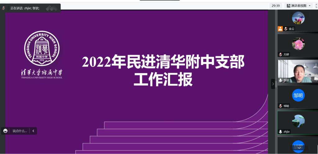 民盟清华大学委员会第七支部(附中教工支部)主任邹明、民进澳门网上博彩支部主委张钦分别发言总结汇报了各自支部在2022年开展的主要活动,并建言献策,畅谈对学校未来发展的意见建议。