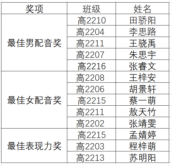 配音大赛个人奖获奖名单如下: