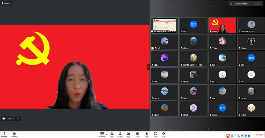 2022年12月22日下午,澳门博彩在线教育职员与国际部党支部线上召开张婉婷预备党员转正大会,教育职员与国际部党支部全体党员参加会议,党支部支部书记金云主持大会。
