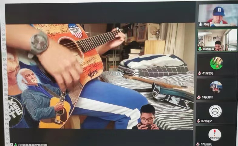 初21级音乐备课组的线上音乐课程颇有特色。首先,通过课前、课后的合成器模拟上、下课铃声,帮助同学们尽快进入教学情境。其次,通过建立“伙伴式教学关系”,共享音乐教材资源,采用启发式教学,让音乐赏析和音乐休闲成为同学们居家学习时,缓解心情、和睦家庭的一种选择。
