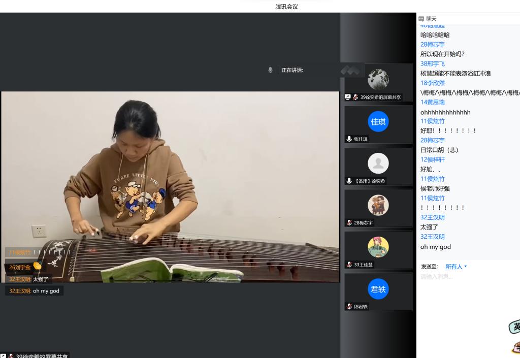 有的班级做了许多前期工作,请同学们总结回顾自己这一年中最难忘的瞬间,将自己的心境起伏与同学们分享。还有班级制作了许多关于班级同学的小竞猜,用ppt展示关于班级同学的冷知识。同学们可以随时开麦克风或者在聊天区留言参与活动,这使得联欢会的气氛充满了温情与欢乐。
