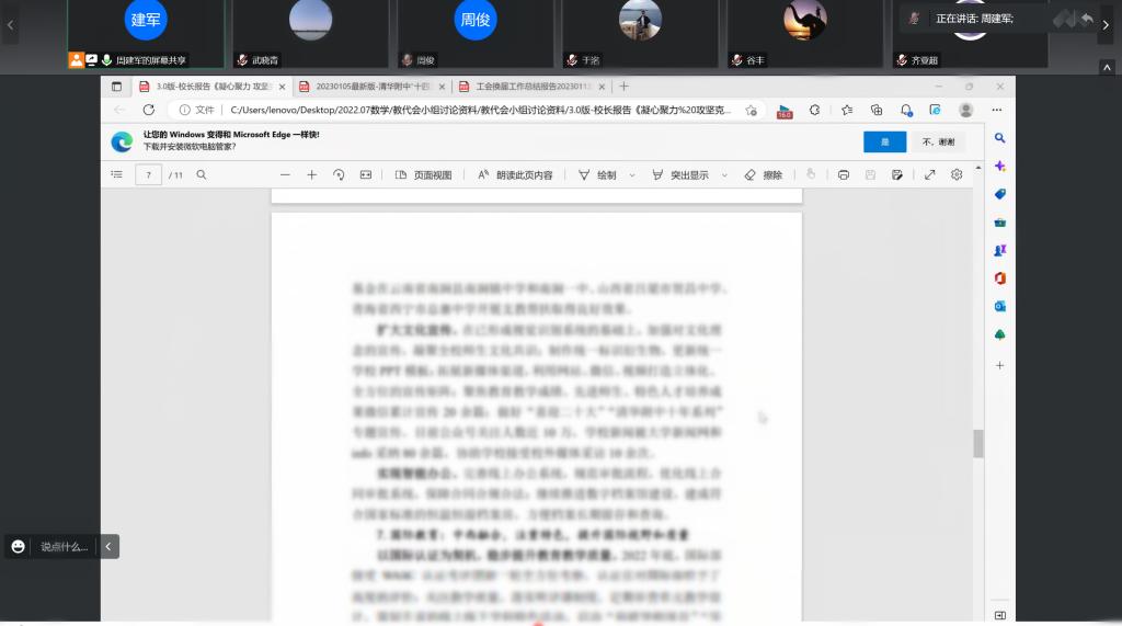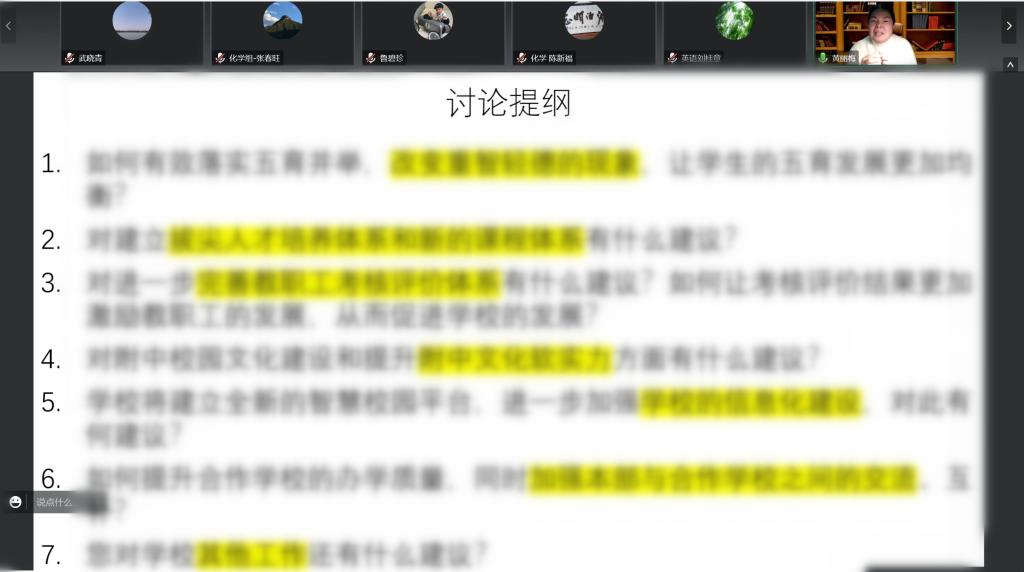 经过短暂的休会,大会进入分组讨论阶段,教代会代表组审议校长工作报告、工会工作报告,围绕落实五育并举,建立拔尖人才培养体系和新课程体系,教职工考核评价,校园文化建设等问题深入讨论,提出新的提案建议,为推动学校各方面发展建言献策。其他会员教师也以工会小组为单位围绕学校中心工作讨论发表意见。