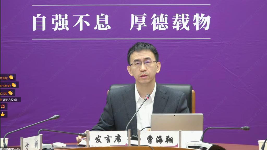 受疫情影响本次会议采用线上形式,大会主席团常务主席、党委书记曹海翔主持会议。