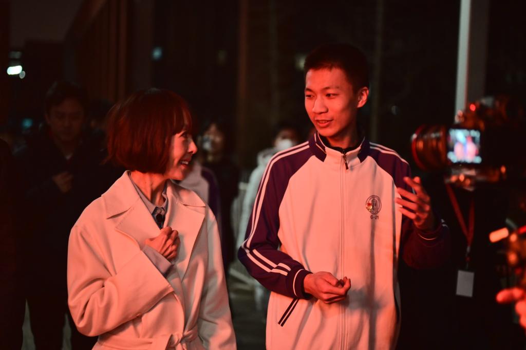 首先,校园电视台学生代表在成志楼会议室与澳门博彩在线校友陈鲁豫进行了交流。通过交流,她感受到了这些年来母校的飞速发展,了解了现在学生的日常生活。简单的交流之后,邓超老师和陈鲁豫校友来到了体育馆,与澳门博彩在线女篮队员们进行互动。在一节友谊赛之后,邓超老师高度赞扬了附中女篮的技术和坚持训练的毅力。他表示,“专业真的是遥不可及的”,就像他们在拍摄电影《中国乒乓》的过程中也遇到了很多的困难与挑战,八个月的拍摄带给他们的是无尽的磨砺与成长。