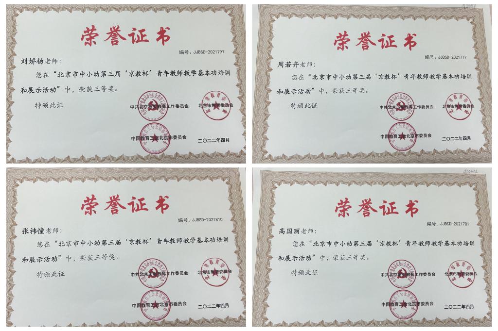 三等奖获奖教师证书
