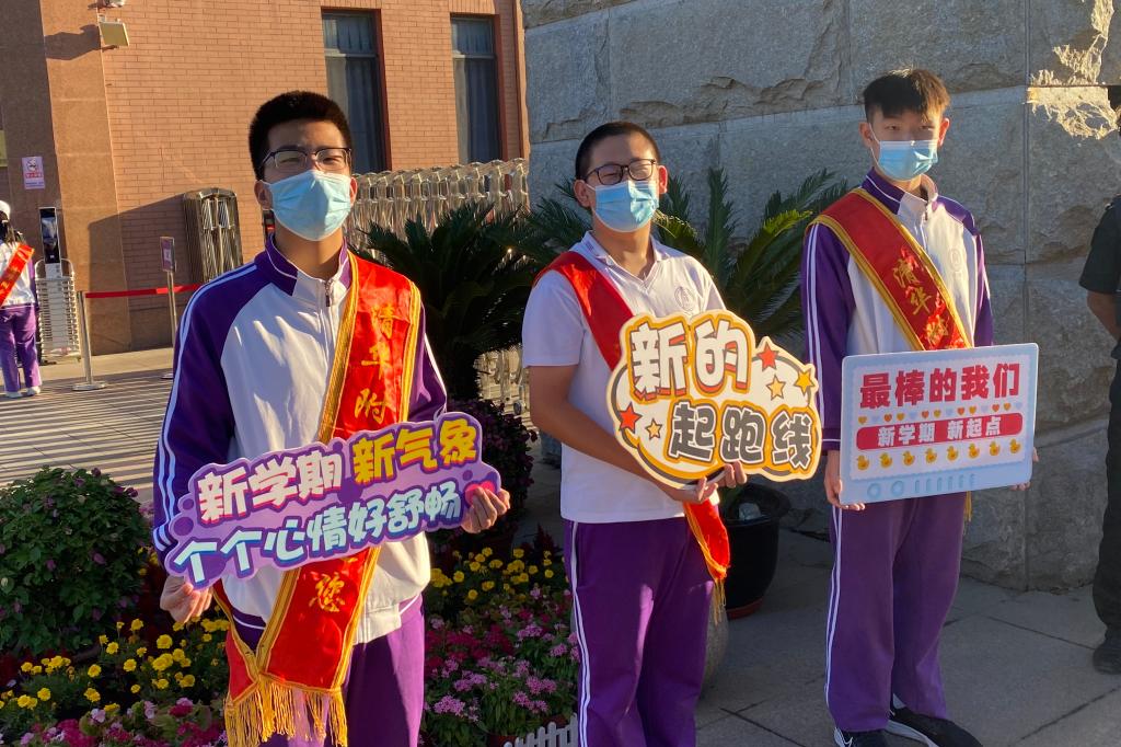 高2103班在做“水木行动”时发现在疫情防控阶段,大家带着口罩,看不见彼此的脸,于是主动申请每天早晨在校门口值班问好,通过自制的展板和热情的微笑问好开启了附中师生美好的一天。