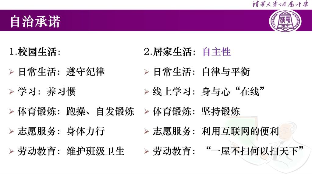 在申请星级班级之前,各班班委在班主任的带领下进行了积极地讨论,并召开主题班会,确定了各班的特色和目标。不仅如此,各班还根据目标制定了相应的监督方法,全班动员,共同参与。在认定过程中,各班也是积极反思,不断总结,尤其是在上学期线上学习阶段,各班利用申请自治星级班级的契机为学习和生活打下来良好的基础。