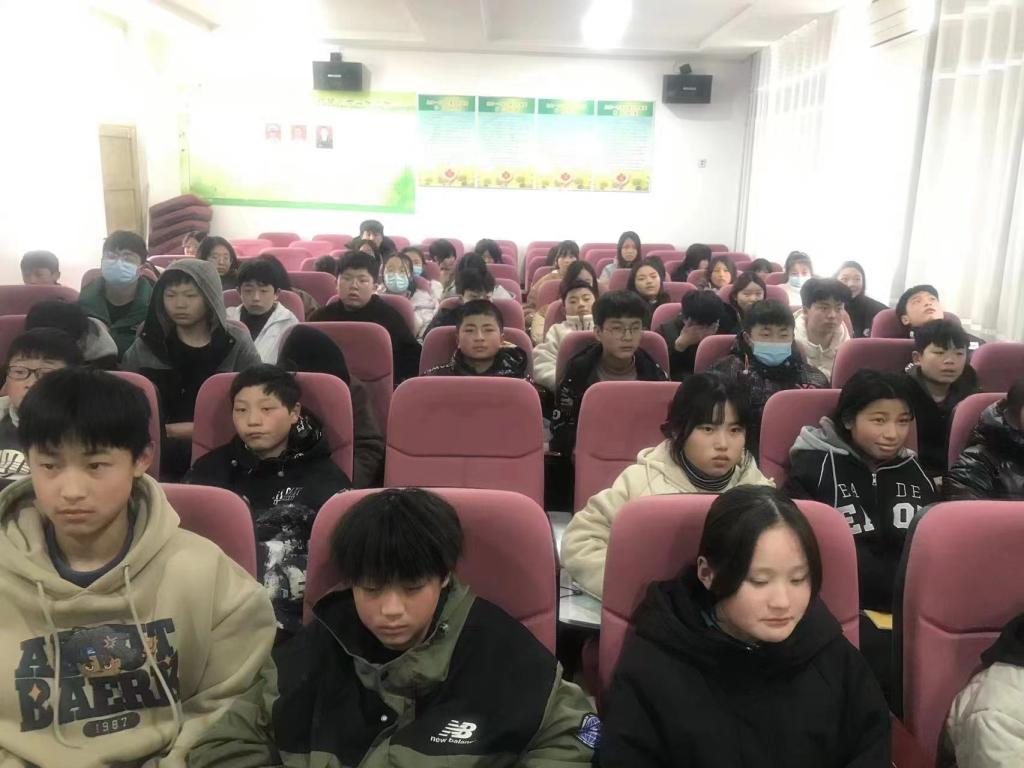 河南省民权县北关镇第一中学初一学生聆听附中录制的支教课程