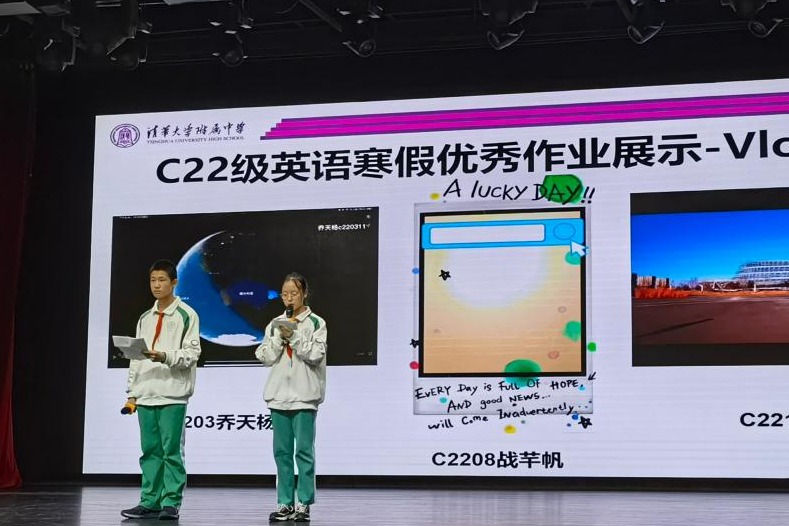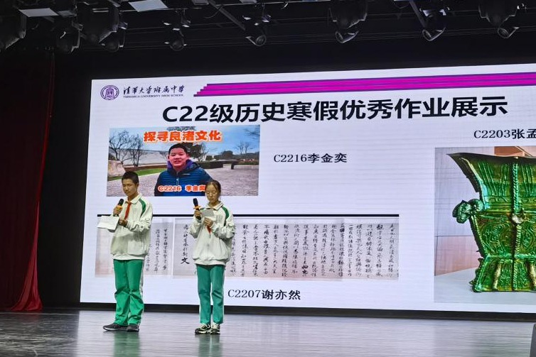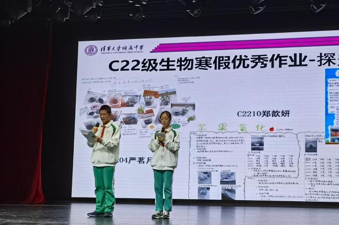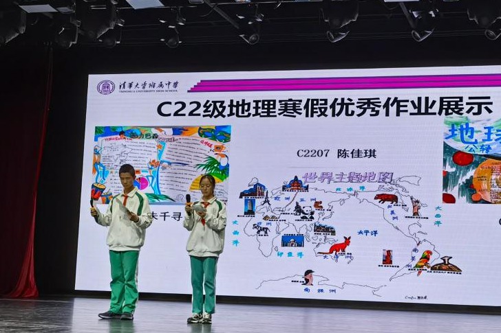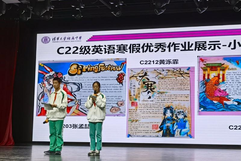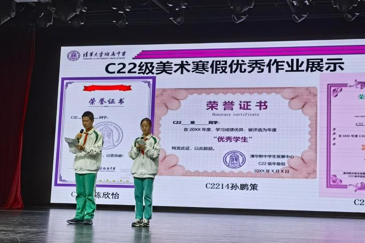 最后,初22级进行了寒假作业表彰。各备课组在寒假优秀作业中挑选出了三项优秀作业,并为这些同学颁奖。大会对各个科目的优秀作业进行了展示。