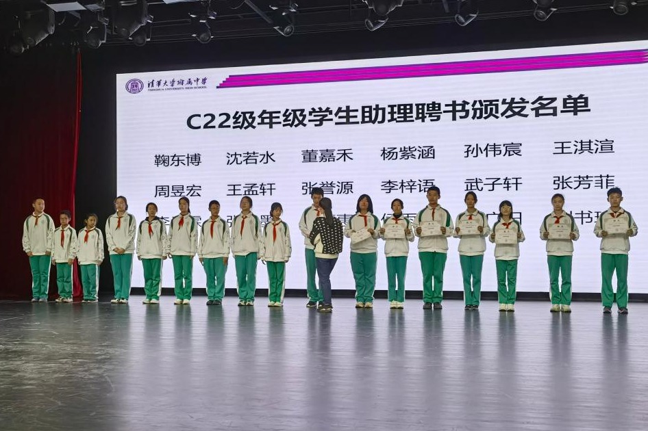 初22级年级组长熊学勤老师为年级助理颁发聘书