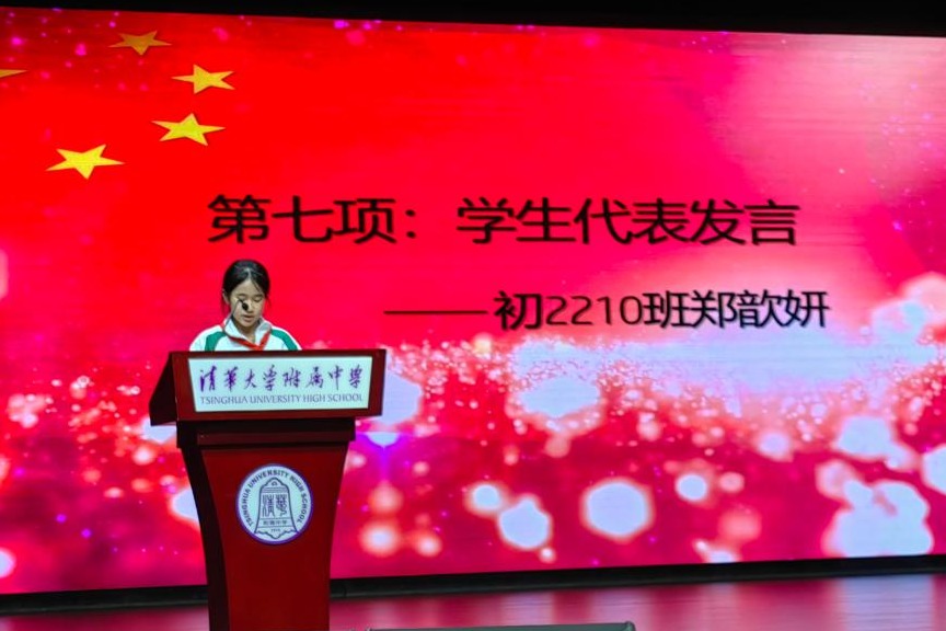 初2210班的郑歆妍同学作为优秀少先队员代表发言。少先队是建设共产主义的先锋队,要坚持中国共产党的领导。少先队要担当大任,必须深刻认识我们所处的时代和环境。作为澳门博彩在线少先队,还应以一代代顽强拼搏、真诚奉献的清华人为榜样。千里之行,始于足下。要将勇当重任的信念融入到学习、日常生活中;要自强不息,铸造个体强大的精神内核;要行胜于言,扎实学习文化知识,持续锻炼健康体魄。同时要融入集体,培养协作精神。“春风化雨乐未央,行健不息须自强。”让我们牢记习近平总书记的嘱托,“让青春在为祖国、为民族、为人民、为人类的不懈奋斗中绽放绚丽之花”。