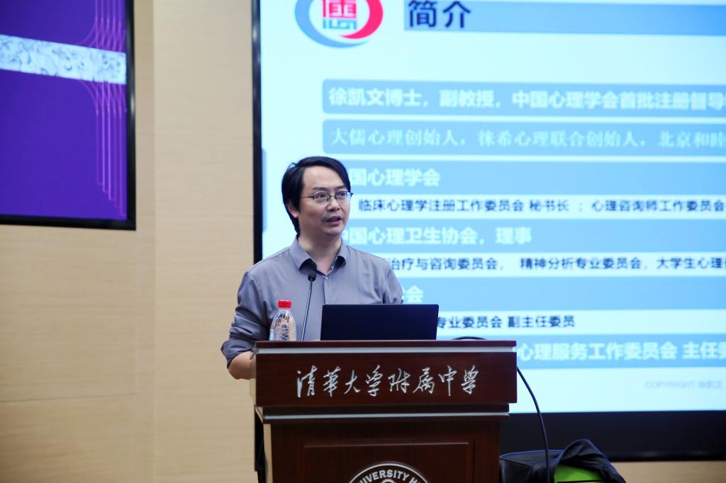 培训会伊始,徐凯文博士以当今典型的青少年个案引入,介绍了后疫情时代青少年心理健康状况的突出特点和常见问题,并从学业压力、亲子关系和人生意义等层面分析了青少年心理健康问题的成因,帮助老师们从不同的层面和视角去理解当代青少年出现厌学、拒学等行为背后的深层原因。