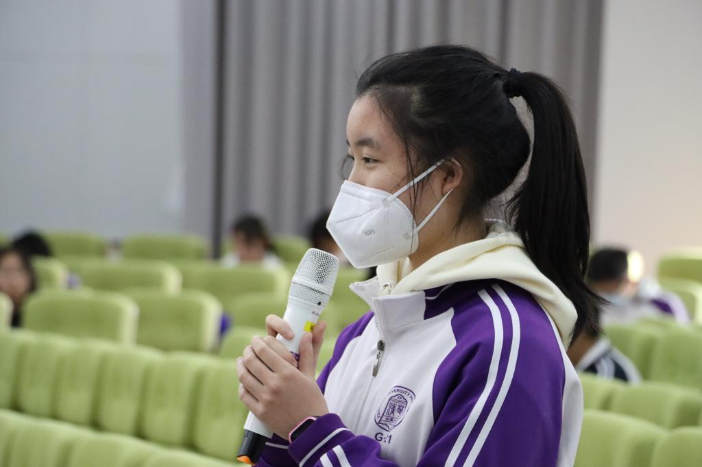 王煊璞同学以“聚焦”为主题,结合当下时事热点,为大家带来了一场全新的思维体验。他认为,聚焦中心是在探寻事物的本质和关系,获得规律,从而解决种种问题。他神采奕奕、意气风发,时而慷慨激昂,时而如小溪潺潺流水,润物无声。