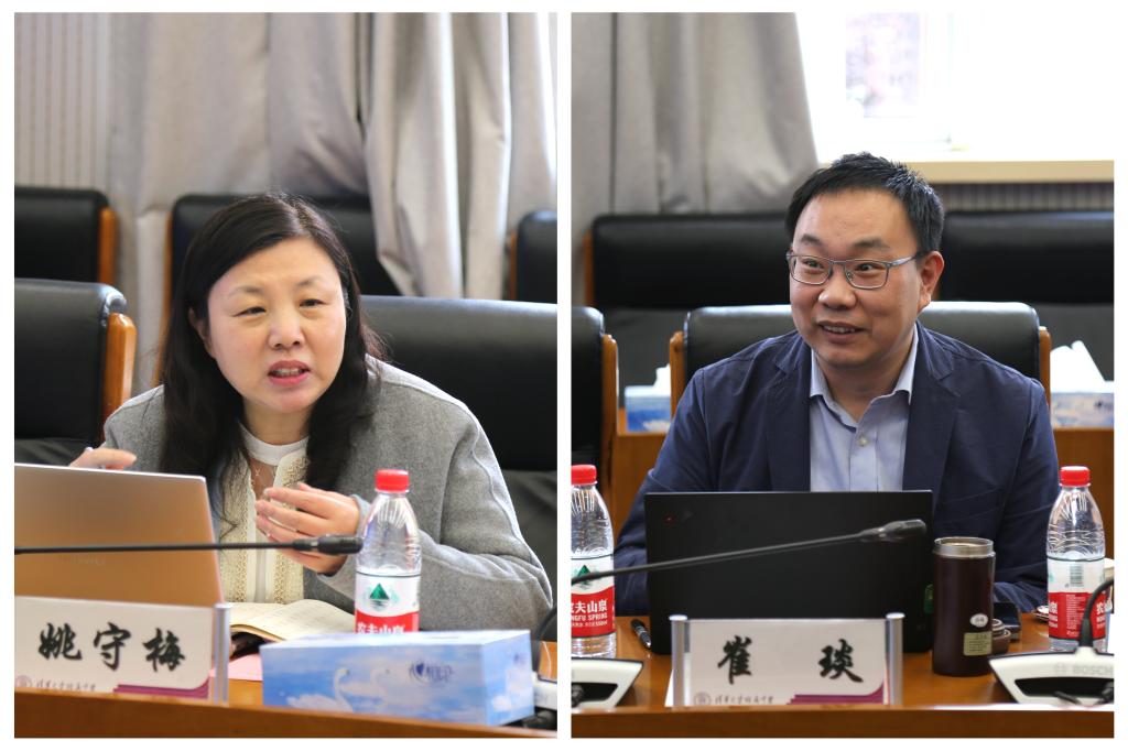 海淀区教师进修学校副校长姚守梅(左)、中学教研室主任崔琰(右)指导发言