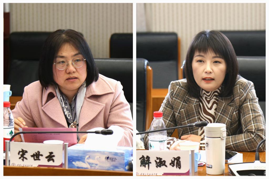 海淀区教科院课程研究中心主任宋世云(左)、海淀区教委基教二科副科长解淑娟(右)指导发言