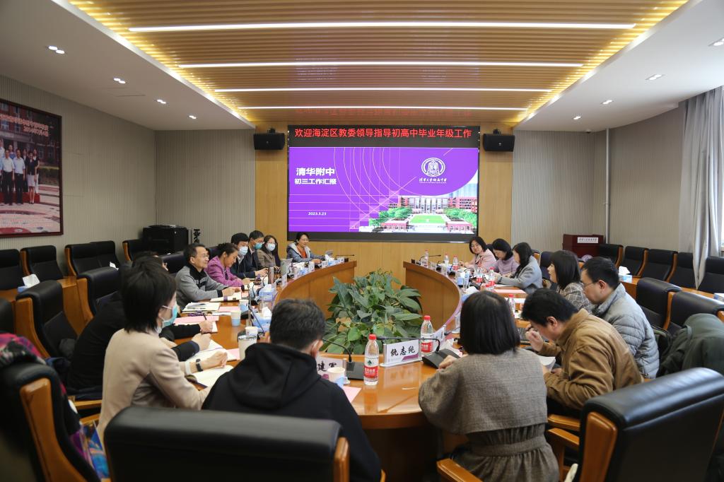 2023年3月23日,在海淀区委教工委副书记、区教委主任杜荣贞的带领下,海淀区教工委、教委领导一行10人莅临澳门网上博彩调研指导初高中毕业年级工作。澳门网上博彩校长方妍,教学和德育两部门领导和初高三年级组长陪同调研。本次调研会议在成志楼101会议室召开,由海淀区教委基教二科副科长解淑娟主持。