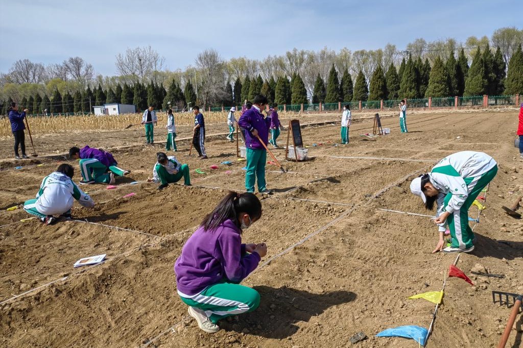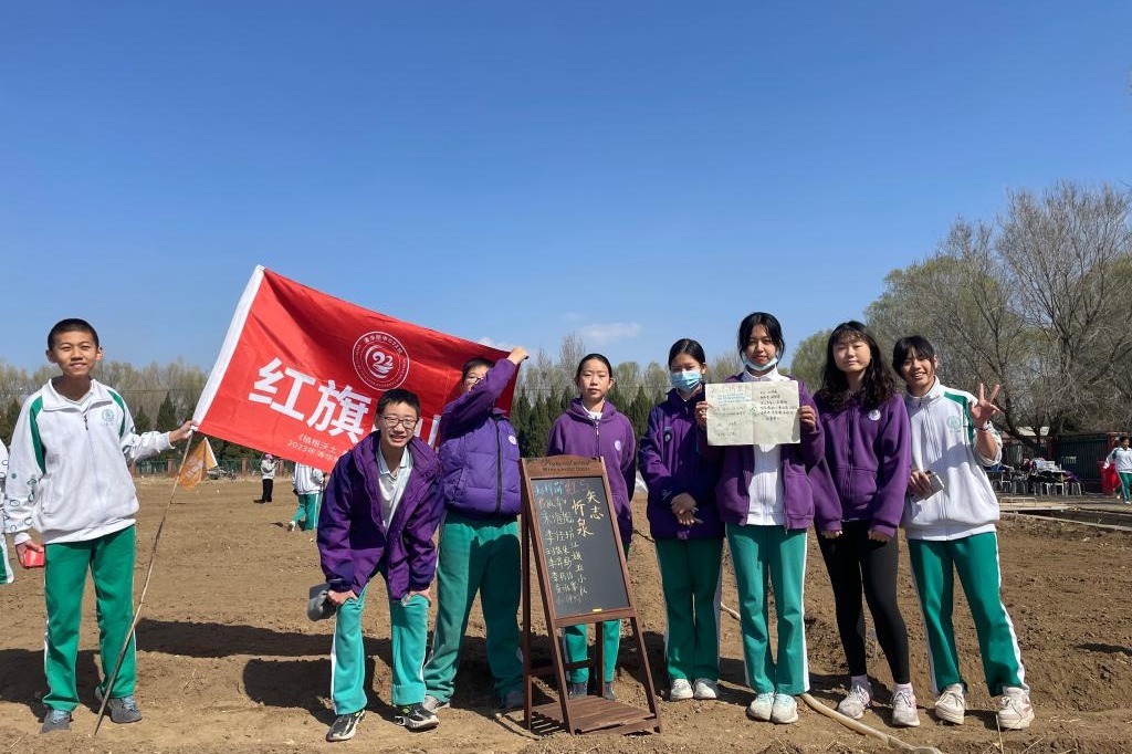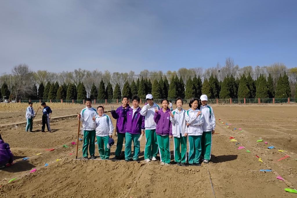 最后,同学们根据各小组的生产计划领取种子,第一茬的叶菜就播种完成了。至此,同学们以小组的形式共同完成了50平米的菜园设计、规划、建设以及种植。初2202班张济尧同学说:“通过挑选植物品种、布置种植格局、堆砌田间土垄、播撒浇灌种子,我真正体会到劳作的每一步都是心血的凝聚,每一步都是汗水的挥洒。学农活动增强了我的团队意识,磨砺了我的意志,也锻炼了我的劳动能力”。