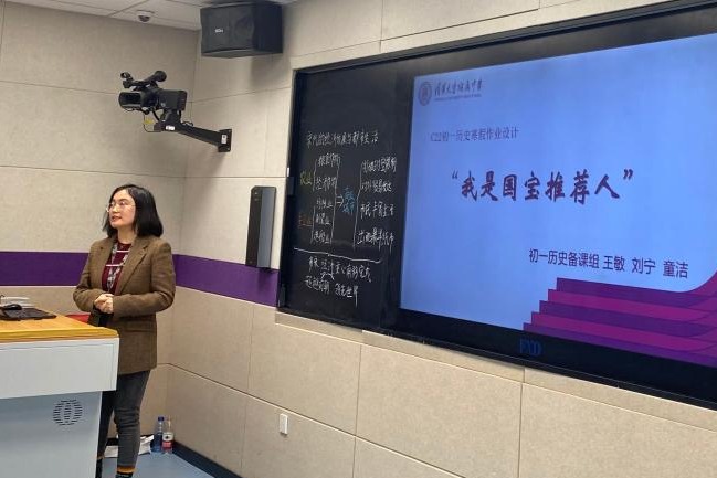 澳门网上博彩初一年级备课组长王敏老师向听课教师讲解了初一备课组在寒假开展的特色活动,介绍了“双减”背景下初一年级的特色寒假作业“我是国宝推荐人”。
