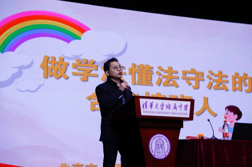 2023年3月29日下午,高22级“法治进校园”生涯讲座在报告厅顺利举行。本次讲座有幸邀请到北京市人民检察院第一分院第七检察部金朝主任担任主讲嘉宾,旨在帮助学生了解未成年人保护的相关法律知识,提高法律素养和防范意识。学生发展中心主任李书霞,高22级年级组长罗长文,生涯办公室徐琢瑶老师出席本次活动。