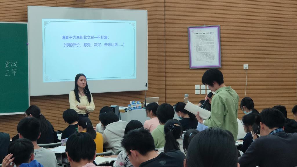 胡文璨老师的《谏逐客书》以“秦王的感受”作为切入点,让学生带入到“秦王”的角色中,借助表格梳理全文。整体的教学过程回到了历史现场,并通过读写结合,让学生以秦王的身份给李斯写一封批复而真正体验到李斯的劝谏艺术。