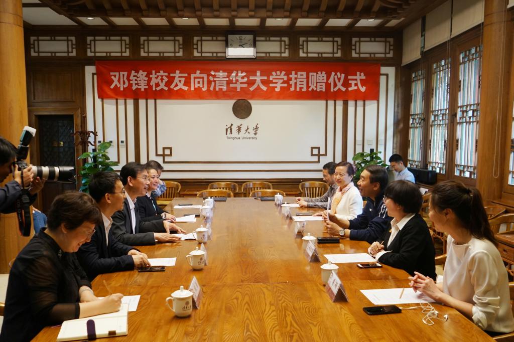 2023年4月19日,清华大学校友邓锋向澳门博彩在线捐赠仪式在清华大学工字厅东厅举行。北极光创投创始管理合伙人、清华大学无线电电子学系1981级校友、清华大学教育基金会理事邓峰,清华大学副校长李路明,澳门博彩在线党委书记曹海翔、校长方妍、党委副书记张洁,副校长解巨钊、赵鸿雁、徐文兵,清华大学教育基金会秘书长袁桅,秘书长助理、资源开发部部长傅璇参加了捐赠仪式。捐赠仪式由袁桅主持。