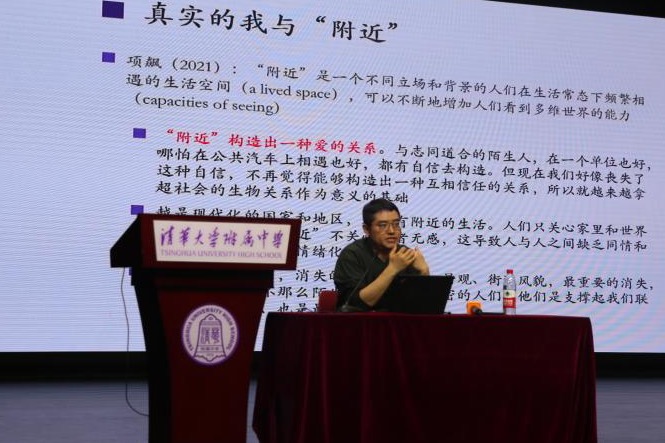 随后,讲座开启了“网络技术的快速发展如何影响我们与社区和周围人的互动”的话题。严飞引用了人类学家项飚提出的“消失的附近”的概念,来说明我们对技术的依赖如何导致现实生活中的互动受到侵蚀。