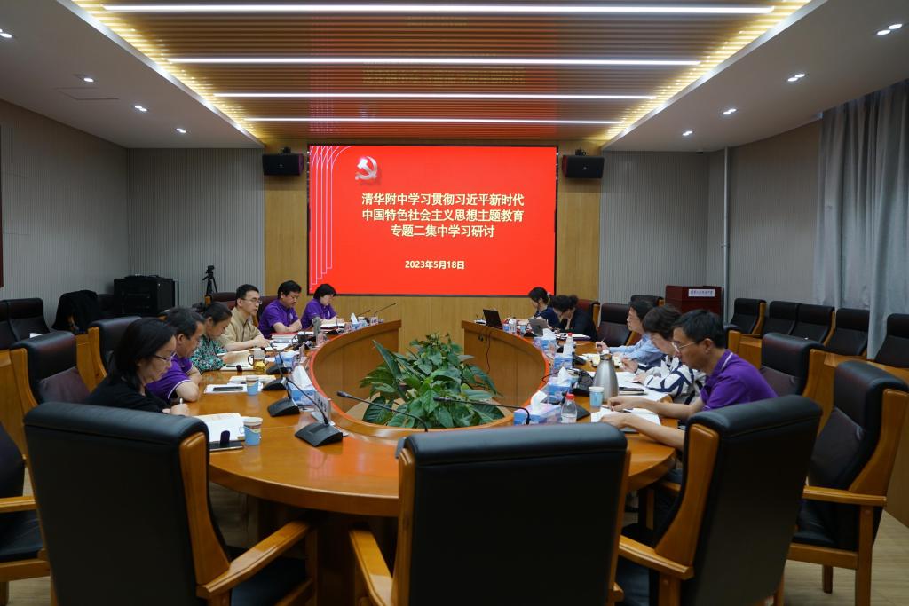 附中理论中心组全面学习领会习近平新时代中国特色社会主义思想,结合工作实际和职责任务,继承和发扬老一辈革命家深入基层调查研究的优良传统,继承和发扬清华大学党组织“爱国奉献、又红又专、实事求是、深入群众”的优良传统,用习近平新时代中国特色社会主义思想指导实践,开拓新局。