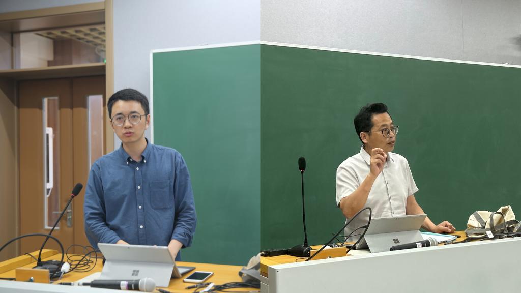 舒迟老师分享经验(左)、高22级年级组长罗长文老师总结发言(右)