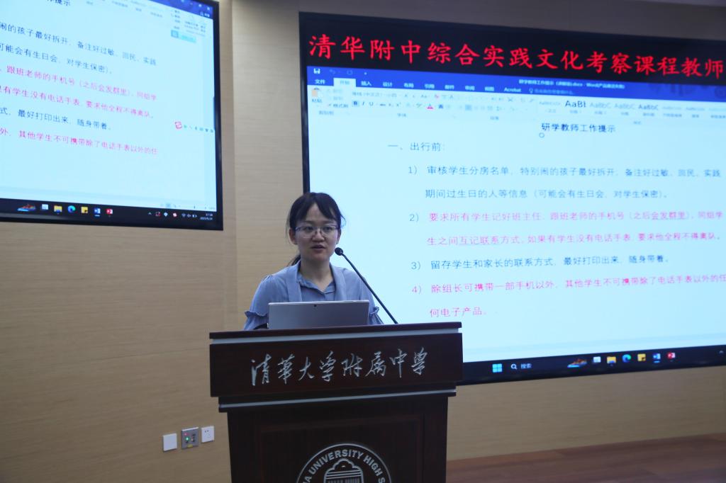 会上,王田主任向带队老师进行了全面而细致的行前培训。他以“活动前、活动中与返程”的时间线为线索,讲解了每一环节注意事项,并提醒老师们“行前有思考多准备、行中有学习多提问、行后有总结善反思”,同时重点强调了出行安全与文明礼仪要求。李书霞主任指出,附中的综合实践文化考察活动淡化了旅游属性、强化了课程价值,外出亦是课堂,鼓励老师们要引导学生争做行走的附中名片。