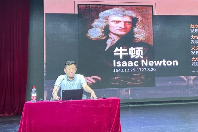 作为科学史领域的专家,吴国盛教授向学生们介绍了牛顿的科学探索历程和他对物理学领域的重大贡献,特别是牛顿的万有引力定律,该定律对于理解宇宙的运行规律产生了深远的影响。虽然牛顿的苹果故事是否属实有待商榷,但它成为了科学史中的经典典故,激发了人们对于探索自然规律的兴趣和好奇心,象征着人类对于探索自然规律的渴望和勇气。