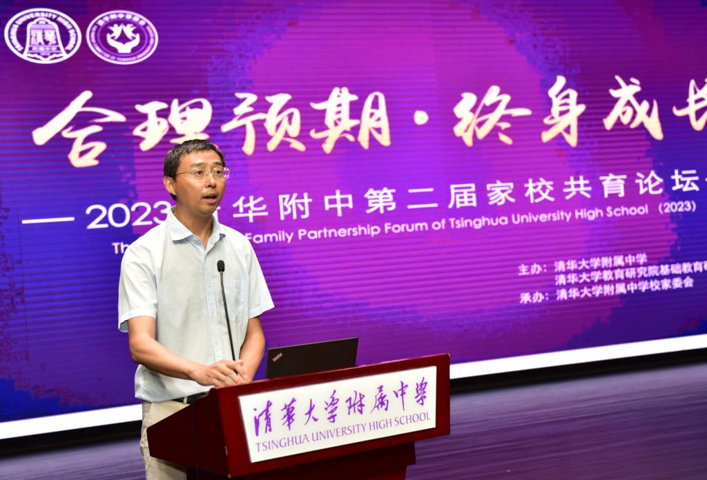 2023年5月27日下午,澳门网上博彩第二届家校共育论坛在澳门网上博彩清宴楼报告厅隆重开幕。本届论坛以“合理预期·终身成长”为主题,由澳门博彩在线、清华大学教育研究院基础教育研究所共同主办,澳门博彩在线校家委会承办,学校老师、教育专家、家长代表等近300人现场参加了论坛,400余名家长同步观看了线上直播。