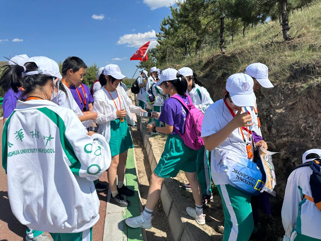 当天下午,师生们前往大同火山群地质公园,沿狼窝山木栈道参观。火山地貌形成原因是老师为学生们讲解的重点。同学们认真听取研学导师的讲解,并互相交流讨论。同学们还分组采集了火山土壤样本,为晚上的实验做准备。