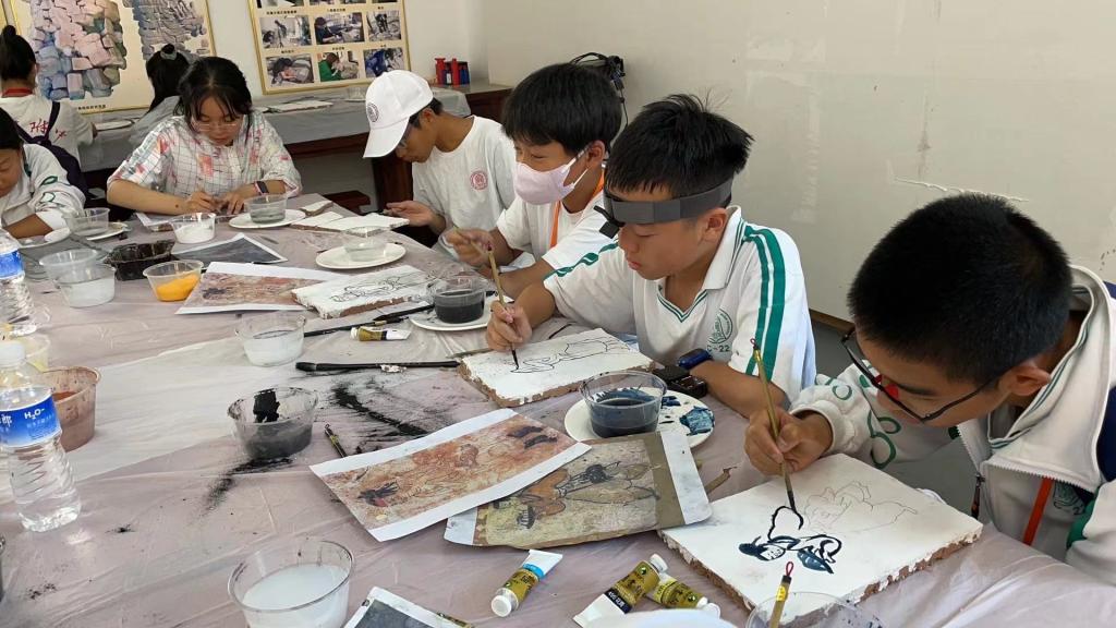 下午,同学们跟着云岗研究院研究员走进壁画修复中心,在认真聆听了专家解读壁画修复的奥秘后,学生们沉浸式体验了壁画修复实操课程,亲自动手对壁画进行了修复、清理、拼对和粘接等复原操作。在体验中,同学们感受到壁画修复的艰难和复杂,更加认识到文物保护工作的重要性。