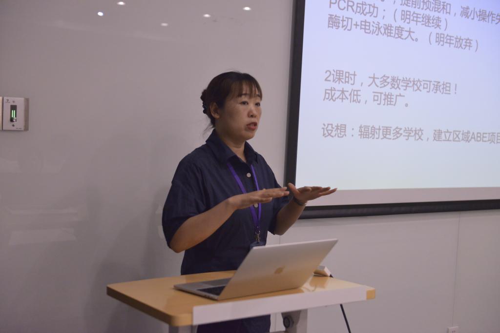 任课教师代表王宣分享了澳门博彩在线实施ABE项目的情况及反思。本项目校本课旨在创新拔高,激发学生兴趣,启发职业发展;增强科技自信自立、厚植家国情怀。500人实验课旨在理论联系实际,让学生真实接触到微观而抽象的基因、PCR等现代生命科学涉及的内容。王宣分享了整合ABE课程、高中课标要求并成功实施的经验,并分析课程结果,提出可推广、辐射到更多中学的低课时成本、低经济成本的设想。