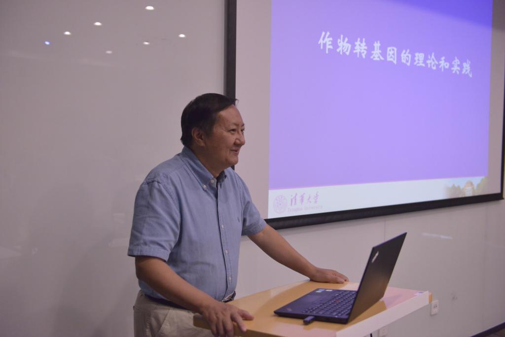 最后,清华大学生命科学学院刘栋副院长给同学们作题为《作物转基因理论与实践》的科普报告。他用生动翔实的科学史案例,带领同学们体会科学逻辑推理的乐趣,了解科学发现到工程实践应用的整个流程。