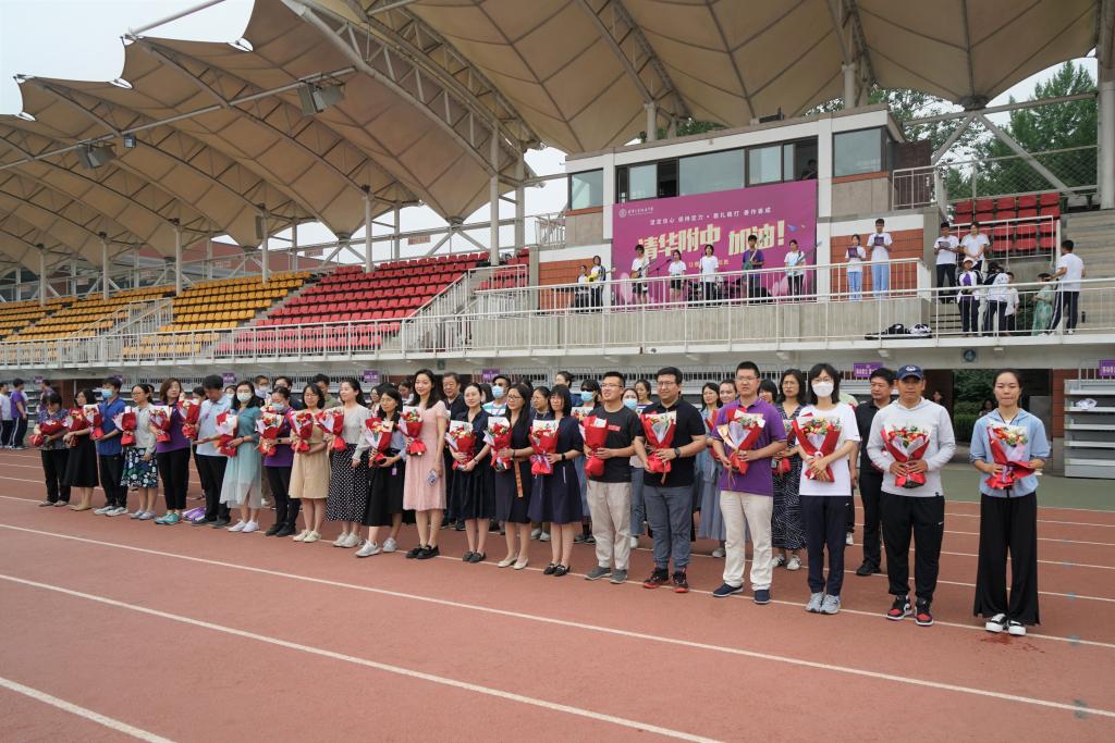 在学生代表的号召下,全体初三同学面对老师,全体鞠躬并高喊出:“谢谢老师,您们辛苦了!”他们向陪伴了他们三年的老师们表达最真挚的感谢。同时,校团委为初三的同学们准备了加油盲盒,里面装有“中考必胜”车票、“金榜题名”香囊,还有专属于初20级的中考加油钥匙扣。